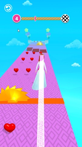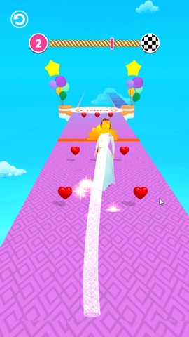 1. 我最爱的一点是收集爱心——新娘头纱会随之变长,速度也提升,这种成长感让跑酷更带劲。