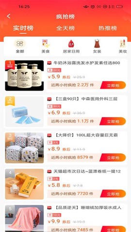 1. 爆款推荐:一折商品限时抢购,人工精选的商品榜单配以超出想象的大额优惠券,人气爆品低至1元,让你享受前所未有的购物快感;