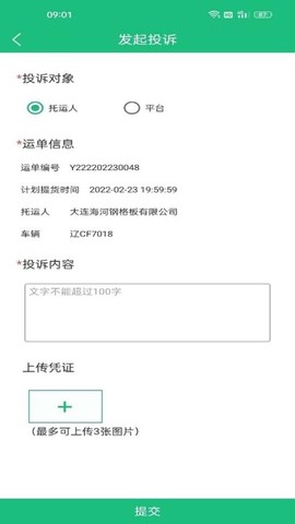 遇到货运问题?没关系!你可以随时发起投诉,描述你的问题,如果服务不满意,轻松提交你的意见,让服务商知道你的需求。