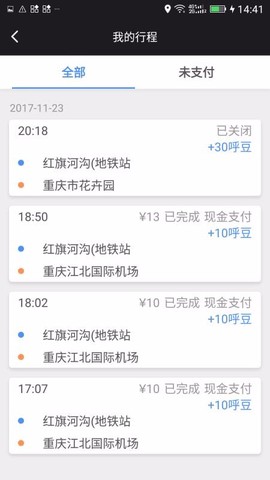 3、点击“我的行程”,就能查看到完整的订单信息,轻松掌握每次出行情况。